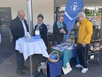 Lambrecht. Am Donnerstag, den 11. April, hatten die Bewohnerinnen und Bewohner von Lambrecht und Umgebung die Gelegenheit, sich über wichtige Angebote für Pflegebedürftige und Senioren zu informieren. Silke Weißenmayer, Mitarbeiterin des Pflegestützpunkts Lambrecht, und GemeindeschwesterPlus Elke Weller stellten sich von 10 bis 13 Uhr am Edeka Kissel SBK-Markt, Hauptstraße 31, den Fragen der Interessierten. Gernot Kuhn, Bürgermeister der Verbandsgemeinde Lambrecht (Pfalz), nahm sich die Zeit, die beiden Damen zu besuchen.