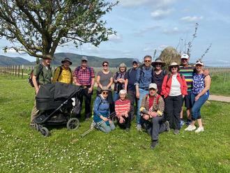 Mit dem ÖPNV erreichte ein kleiner Teil der Gruppe den Ausgangsort Edesheim, ihrer 12 Kilometer langen, leichten Rundwanderung. Hier wurden sie schon von sechs Mitwanderer erwartet.
