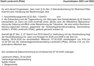 Vorheriger Artikel: Amtliche Bekanntmachung