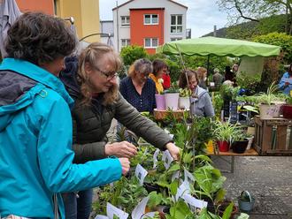 Die Veranstaltung erwies sich erneut als Publikumsmagnet, denn es gab mehr Anbieter von Pflanzen als in den Vorjahren. Das Außengelände der AWO präsentierte ein vielfältiges Angebot an Nutzpflanzen, darunter exotische Früchte wie Mangos sowie alte Gemüsesorten wie Guter Heinrich. Besonders hervorzuheben waren die zahlreichen Blühpflanzen, insbesondere heimische, insektenfreundliche Arten wie Natternkopf und Wilde Karde.