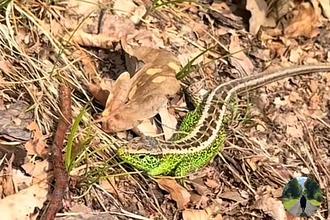 Besonders auffällig ist das Männchen der Zauneidechse, wie es Susanne Stütz vor die Linse bekommen hat: Zur Paarungszeit im Frühjahr färben sich die Flanken intensiv grün - ein prächtiges Signal an Weibchen und ein klares Zeichen der Revierverteidigung gegenüber anderen Männchen. Weibchen hingegen zeigen sich eher in unauffälligem Braun.