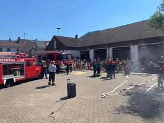 Bereits in den ersten Minuten nach Beginn füllte sich das Festgelände am Tag der offenen Tür bei bestem Wetter schnell. Viele waren der Einladung nachgekommen, das reichhaltige Angebot an Speisen und Getränken bei einem Blick hinter die Kulissen vieler teilnehmender Behörden und Organisationen mit Sicherheitsaufgaben über den gesamten Tag hinweg zu genießen. Los ging es mit dem traditionellen Weißwurstfrühstück, das vom Musikverein Königsbach bei zünftiger Blasmusik bis zum Mittagstisch umrahmt wurde. Neben deftigem Spießbraten gab es viele weitere, leckere Gerichte, wollte doch die fast zum Bersten gefüllte Halle gut verköstigt werden. Der Nachmittag startete dann mit der Vorführung der Jugendfeuerwehr, die ihr Können im Rahmen einer Brandbekämpfung mit Menschenrettung eindrucksvoll unter Beweis stellte. Einen Einblick in die Welt der Rettungshundearbeit gab im Anschluss die BRH Rettungshundestaffel Mittelpfalz, die mit Hunden verschiedener Ausbildungsstände trotz der hohen Temperaturen und starken Ablenkung durch die Besucher ihre, im Ernstfall lebensrettenden Vierbeiner vorstellte. Das durch die Jugend- und Kinderfeuerwehr betreute Programm des Tages für die kleinen Besucher fand ebenfalls großen Anklang, gab es doch viel Neues und Interessantes zu erforschen und zu tun. Über die Erlöse aus dem großen Kuchenbüffet freuten sich die Nachwuchskräfte besonders. Die fast 20 Feuerwehrfahrzeuge der großen Oldtimerausstellung fanden ihren Weg aus dem gesamten südlichen Bundesgebiet nach Lambrecht und boten ein eindrucksvolles Bild. Diese erfuhren, ebenso wie die Infostände von Technischem Hilfswerk, Landespolizei, Rettungsdienst, Rettungshundestaffel und dem eigenen Fuhrpark der Einheit Lambrecht, reges Interesse bei den Besuchern. Bei vielen interessanten Gesprächen, neu und wieder entfachten Leidenschaften klang der von allen Beteiligten als sehr schön wahrgenommene Tag am Abend aus.