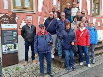 Am Zunfthaus nahm die kleine aber feine Gruppe zum Gruppenbild Aufstellung und präsentierte links eine Muster-Stele mit Informationen und Bildern.