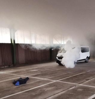 Ein Übungsszenario fand bei der Feuerwehr Lambrecht statt. Angenommen war ein Fahrzeugbrand in einer Fahrzeughalle mit einer vermissten Person. Am Übungsobjekt eingetroffen fanden die Einsatzkräfte eine vollständig verrauchte Fahrzeughalle vor. Unter schwerem Atemschutz wurden umgehend zwei Trupps zur Personenrettung eingesetzt, die aufgrund der Größe des Objektes und unter Nullsicht verschiedene Absuchtechniken anwandten. Nach kurzer Zeit konnte die vermisste Person, welche sich später als Fahrer herausstellte, aufgefunden und dem mitalarmierten Rettungsdienst übergeben werden.