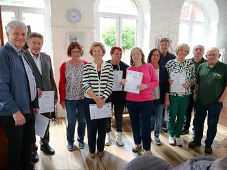 Vorstandschaft und anwesende Vielwanderer von links nach rechts : Gunther Weber (1. Vors.), Rainer Heckmann (2. Vors.), Annette Weber, Gabriele Weber, Marlene Bleh, Christel Houy, Renate Marangoz, Klaus Nowottny (Wanderwart), Ulrike Kobel, Wolfgang Kobel, Bernhard Schmidt,