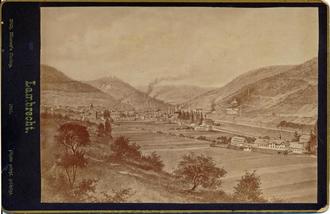 Diese Woche stelle ich keine klassische Ansichtskarte vor, sondern ein besonders frühes Bilddokument von Lambrecht - eine auf Karton aufgezogene Panoramaansicht, die durchaus als Vorläufer der Ansichtskarte gelten kann. Die Darstellung wurde uns von Dirk Adena aus Wilhelmshaven zur Verfügung gestellt. Sein Großvater aus Altenburg bewahrte sie als Erinnerung an seinen Vater Georg Roltsch auf, der einst in Lambrecht lebte.