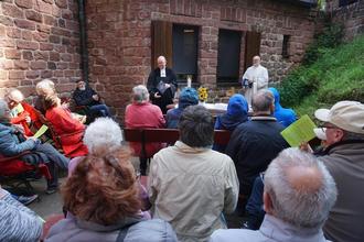 Bei eisigen Wind und nicht gerade frühlingshaften Temperaturen fand der gut besuchte ökumenische talweite Gottesdienst mit Pastor Volker Mayer, Pfarrer Frank Wiehler, Pfarrer Rainer Brechtel, Pfarrerin Hildrun Groß statt, für die katholische Kirchengemeinde sprach Gemeindereferent Michael Kolar. Pfarrer Martin Groß war gleichzeitig aktiver Bläser im Posaunenchor Appenthal unter Leitung von Christa Rottmayer, der musikalisch den ökumenischen Gottesdienst begleitete. Die musikalische Begleitung auf der Burg wurde fortgesetzt durch den Posaunenchor Hambach/Winzingen unter Leitung von Traugott Baur und den Alphornbläsern Südpfalz unter Leitung von Gerhard Busch.
