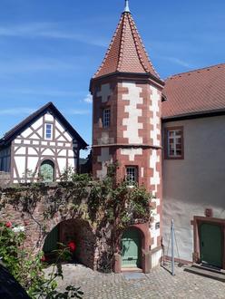 Am Abreisetag führte Alfred die „unkaputtbaren“ Wanderer steil bergauf zur Bockfelsenhütte über Neckargemünd und weiter ansteigend zur historischen Burgfeste Dilsberg und ihrer beeindruckenden Burgruine. Hoch über dem Neckartal gelegen, werden hier im Sommer Burgfestspiele veranstaltet. Wegen Proben der Schauspieler war die Feste leider aktuell nicht begehbar. Der Ausblick über das Neckartal und die Stadt Neckargemünd lohnte dennoch den Aufstieg.