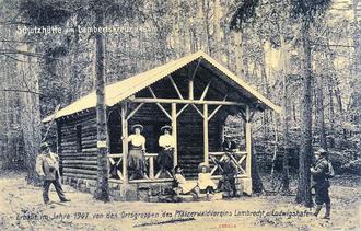 Im Anschluss errichteten sie dort eine einfache Unterkunftshütte aus Holz, die 1907 eingeweiht wurde. Nur zwei Jahre später, also 1909, begann die Bewirtschaftung. Das Waldhaus Lambertskreuz gilt damit als die älteste noch bewirtschaftete Wanderhütte des Pfälzerwald-Vereins.