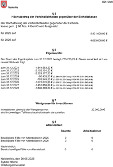 | Der Höchstbetrag der Verbindlichkeiten gegenüber der Einheitskasse gem. § 68 Abs. 4 GemO wird festgesetzt | |