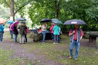 Lambrecht. (gk) Die erste Juniwanderung der alten Lambrechter Fußballer führte trotz durchwachsenen Wetters zum Naturfreundehaus Lambrecht. Auf dem Foto ist eine kleine Gruppe der insgesamt 31 Teilnehmenden bei einer kurzen Rast am Helmbachweiher zu sehen. Aufgrund von Regen und kaltem Wind fiel diese Pause jedoch eher knapp aus.