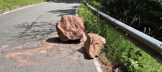 Elmstein. (fw) Die Feuerwehren Elmstein und Iggelbach wurden am 14.06.2025 um 11:27 Uhr zu einem Gesteinsbrocken auf der Fahrbahn auf die K 17 in Höhe der Einmündung „Stilles Tal“ alarmiert.