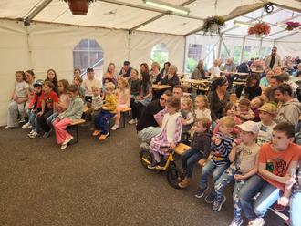 Um 15 Uhr war das Kerwezelt erneut bis auf den letzten Platz gefüllt: Das Figurentheater rund um Michael Schneider zog mit dem Puppenspiel „Der Elwetritschekönig“ Jung und Alt in seinen Bann. Mit viel Witz und lokalen Bezügen brachte Schneider nicht nur die Kinder zum Mitmachen, sondern auch die Erwachsenen zum Lachen.