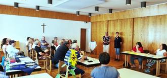 Gabi Kaiser stellte die „Nachbarschaftshilfe Esthal” vor. Menschen 80+ benötigen Hilfe bei Behördengänge oder Kontakt zu Sozialstationen, Pflegestützpunkten und zur Fachkraft Gemeindeschwester plus. Auch sind Unterhaltung und Geselligkeit wichtig, hilfreich sind Wanderungen, Turnübungen, gemeinsames Singen bei Bürgertreffen usw.