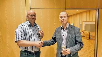Verbandsbürgermeister Gernot Kuhn gratuliert Andreas Ohler zum Wahlsieg