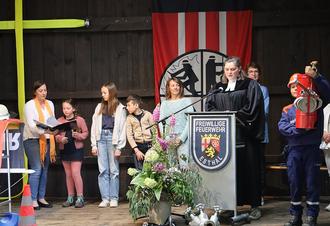 Für ihre Ansprache suchte Gemeindereferentin Claudia Fischer eine passende Geschichte aus der Bibel, in der Feuerwehrleute im Mittelpunkt stehen. Sofort ist ihr das Gleichnis vom barmherzigen Samariter eingefallen und zog Parallelen zu den Aufgaben und Hilfeleistungen der heutigen Feuerwehr.