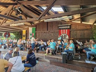 Am Montagabend fand der gemütliche Ausklang der vier Tage dauernden Feierlichkeiten zum 150-jährigen Jubiläum der Freiwilligen Feuerwehr Esthal statt. Der Musikverein Esthal, unter der Leitung von Stephanie Bahm, sorgte für einen fulminanten Abschluss und brachte die Waldfesthalle zum Beben.