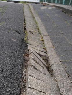 Die Grabenstraße in Lambrecht musste total gesperrt werden, nachdem die Straße in Höhe der Rinnenplatten zum Gehweg abgesackt ist