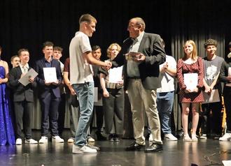 Im Anschluss übergab Winfried Baumann den Fachpreis Physik an Leon Herrmann (Klasse 10a) für besondere Leistungen in diesem naturwissenschaftlichen Bereich.