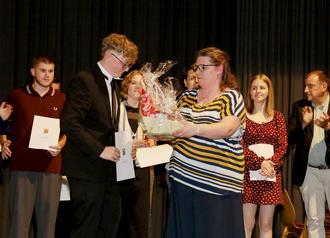 Auszeichnung Tim Filbrich (Klasse 10a) durch die Vorsitzende des Fördervereins Yvonne Schneider