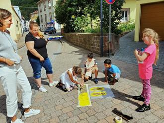 Weitere „Gelbe Füße“ und Kennzeichnung der Überwege des Schulwege-Leitsystems in Lambrecht wurden am 4. Juli gemeinsam von Schulelternbeirat und Schulkindern der 1. Klasse im Bereich Kirchstraße, Klostergartenstraße, Friedrich-Ebert-Platz und Marktstraße erneuert. Vor drei Wochen waren erste Überwege an Hauptstraße und Schulstraße mit Schulkindern erneuert worden. Über die letzten Jahre waren durch Abnutzung und Witterung die gelben Füße und Überwege ausgeblichen und mussten daher dringend aufgefrischt werden. Die Schule bedankt sich hierbei für die Unterstützung durch den ortsansässigen Malerbetrieb Annweiler, der die Markierungsfarbe gespendet hat.