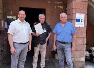Schmiedefesteröffnung - v.l Verbandsbürgermeister Gernot Kuhn, Benno Münch vom Förderverein und Ortsbürgermeister Rene Verdaasdonk