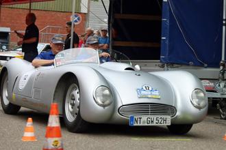 Startnummer 12: MC Hassloch Ulrich Detscher und Friedhelm Kissel mit einem BMW Großer Werkmeister 328 1952