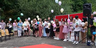 Die Abschlussfeier der Realschule plus am Speyerbach erfolgte in diesem Jahr in kleinem Rahmen im Schulgarten. Zu ihrem Zeugnis erhielten die Absolventinnen und Absolventen einen Luftballon und eine Rose.