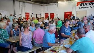Das ehrenamtliche Engagement der Bürgerinnen und Bürger wurde durch die Einladung von Stadt und Verkehrsverein Lambrecht zu einem Grillabend belohnt. Stadtbürgermeister Karl-Günter Müller erinnerte bei seiner Begrüßung im Feuerwehrhaus an das „wunderschöne Geißbock-Festspiel“, das erstmals wieder an zwei Tagen ohne Regenunterbrechung gefeiert werden konnte. Alle Mitwirkende, vor, auf und hinter der Bühne dürften auf das Erreichte richtig stolz sein. Der Erfolg sei aber nur möglich geworden, weil jeder Teilnehmer, jede Teilnehmerin an seinem/ihrem Platz das Beste für die Allgemeinheit gegeben hat und alle Teilbereiche zu einer Einheit geformt werden konnten.