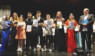 Ehrungen an der Realschule plus am Speyerbach, von links nach rechts: Gabriela Kurteva, Nathalie Boschem, Almira Krasnici, Turan Taksin, Ahmad Hazza, Felix Bissinger, Celina Clemens, Narin Tekin und Rektor Winfried Baumann.
