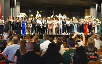Die Schülerinnen und Schüler der Abschlussklassen beim gemeinsamen Abschlusslied von Andreas Bourani „Ein Hoch auf uns!“