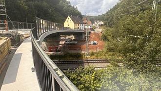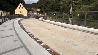Im unteren Bereich der Brücke, dort wo keine fertigen Brückenträger verbaut wurden, ist eine gewaltige Schalung angebracht die von einer Stützkonstruktion getragen wird. In der Schalung wurde die Bewehrung montiert. Für Donnerstag dieser Woche ist geplant, dass der Beton eingefüllt wird. Anschließend werden die sogenannten Gehwegköpfe betoniert, die Geländer angebracht und die Beleuchtung montiert. Sobald die beiden Zufahrten hergerichtet sind, wird die Asphaltdecke aufgebracht. Dies wird alles bis Oktober erledigt sein - so ist der Plan. Dann ist der Tag der Einweihung auch nicht mehr fern und die Weißenbacher können ungehindert in ihre Straße ein- und ausfahren. Die langen Wartezeiten am Bahnübergang WP 90 ist dann Geschichte.