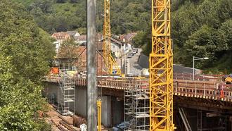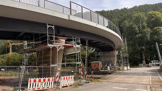 Weidenthal. (hk) Wie weit ist der Brückenbau in Weidenthal fortgeschritten? Dieser Frage bin ich letzten Freitag nachgegangen und habe mich mit dem Bauleiter Alexander Lang von der bauausführenden Firma Schleith an der Baustelle getroffen. Mein Resüme: Ich bin stark beeidruckt vom Baufortschritt des neuen Brückenbauwerks. Der obere Brückenbereich ist fast fertig, erklärte mir Alexander Lang. Die Geländer sind montiert und Restarbeiten werden noch in diesem Teilabschnitt ausgeführt. Das Gelände neben und unter der Brücke im oberen Bereich ist modelliert. Nun wird an der Anbindung zur Weißenbachstraße gearbeitet und die Straßenführung entsprechend angepasst.