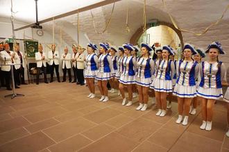 Zur Machtübernahme in den Ratssaal im Zunfthaus einmarschiert war der Elferrat der Lambrechter Gäsböck. Die Garde bot die notwendige Unterstützung bei der „kampflosen“ Rathaus-Erstürmung.
