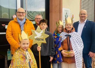 Lambrecht. (mk) Am diesjährigen Dreikönigstag machten sich die Esthaler Sternsinger*innen auf den Weg zur Verbandsgemeindeverwaltung Lambrecht. Dort wurden sie von Bürgermeister Gernot Kuhn sowie dem Beigeordneten Erich Pojtinger herzlich empfangen.