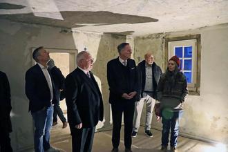 Neidenfels. (hk) Mit großer Freude und sichtbarem Stolz begrüßte Ortsbürgermeisterin Sybille Höchel am Mittwochnachmittag die Gäste zur Übergabe der Förderbescheide für die Sanierung des Schimpf’schen Hauses in Neidenfels. In ihrer Ansprache betonte sie die besondere Bedeutung des Tages für die kleine Ortsgemeinde, die als kleinste Gemeinde der Verbandsgemeinde Lambrecht von dieser Förderung in besonderer Weise profitiere. Die Ortsbürgermeisterin hob hervor, dass der persönliche Besuch von Minister Michael Ebling ein Zeichen der Wertschätzung für Neidenfels sei. Anlass des Termins war die Übergabe der Zuwendungsbescheide aus dem Investitionsstock des Landes Rheinland-Pfalz sowie aus dem Bundesprogramm „KulturInvest“ für die umfassende Sanierung des historischen Schimpf’schen Hauses. Höchel unterstrich, dass mit den Fördermitteln ein wichtiger Schritt zur Erhaltung des aus dem Jahr 1737 stammenden Erbbestandshofs möglich werde. Ziel sei es, das ortsbildprägende Gebäude künftig als offenen Ort der Begegnung für Jung und Alt zu nutzen und der Öffentlichkeit zugänglich zu machen. Untergebracht werden sollen dort später das historische Archiv, Teile des Papiermachermuseums, das Büro der Ortsbürgermeisterin bzw. des Ortsbürgermeisters, ein Rats- und Trausaal sowie Räume für die offene Jugendarbeit. In seinem Grußwort bezeichnete Innenminister Michael Ebling die Sanierung des Schimpf’schen Hauses als ein „großes und ambitioniertes Vorhaben“. Gerade bei solchen Projekten sei es wichtig, dass alle Beteiligten gemeinsam überlegten, wie ein solches Ziel erreicht werden könne. Ebling brach ausdrücklich eine Lanze für den Denkmalschutz. Historische Gebäude wie das Schimpf’sche Haus seien prägend für die Geschichte des Ortes und der Region – ihr Verlust wäre ein unwiederbringlicher Schaden. Der Minister würdigte insbesondere das Engagement der Ortsgemeinde, die sich bewusst dafür entschieden habe, das Gebäude zu erhalten und zugleich Ideen für eine zeitgemäße Nutzung zu entwickeln. Es gehe nicht allein darum, historische Substanz zu bewahren, sondern das Haus wieder als lebendigen Ort zu etablieren: als Treffpunkt, Versammlungsort, Raum für Gespräche, Entscheidungen und auch für gemeinsames Feiern. Zugleich machte Ebling deutlich, dass historische Gebäude nicht zur erdrückenden Last für eine Gemeinde werden dürften. Genau an diesem Punkt setze die öffentliche Förderung an. Diese sei nicht nur Pflege von Geschichte, sondern vor allem eine Investition in die Zukunft. Es gehe darum, kulturelles Erbe weiterleben zu lassen und es an heutige Bedürfnisse anzupassen, statt es dem Verfall preiszugeben. Konkret stellte der Innenminister die finanzielle Unterstützung vor: Aus Mitteln des Bundesprogramms für Denkmalschutz, die über das Land Rheinland-Pfalz abgewickelt werden, fließen 650.000 Euro in das Projekt. Hinzu kommen weitere 1,6 Millionen Euro aus dem sogenannten Investitionsstock des Landes. Insgesamt stehen damit rund 2,3 Millionen Euro für die Sanierung des Schimpf’schen Hauses zur Verfügung. Ebling dankte der Ortsgemeinde ausdrücklich für ihre Beharrlichkeit. Es sei keineswegs selbstverständlich, bei einem solchen Projekt trotz Kosten und Unsicherheiten am Ziel festzuhalten. Sein Dank galt ebenso der Verbandsgemeinde und dem Landkreis für die Unterstützung. Landrat Hans-Ulrich Ihlenfeld gratulierte der Ortsgemeinde Neidenfels und der Verbandsgemeinde Lambrecht zur nun bewilligten Förderung für die Sanierung des Schimpf’schen Hauses. Die Übergabe der Bescheide markiere den erfolgreichen Abschluss eines langen und teils schwierigen Entscheidungsprozesses. Ihlenfeld würdigte das jahrelange Engagement der kommunalen Mandatsträger und betonte, dass der Landkreis im Rahmen der Kommunalaufsicht sowie bei der Koordination der Investitionsstock-Förderung alles darangesetzt habe, dieses Projekt möglich zu machen. Allein aus dem Investitionsstock des Landes fließen 1,6 Millionen Euro; zusammen mit der Bundesförderung beläuft sich die Unterstützung auf insgesamt rund 2,3 Millionen Euro. Das Schimpf’sche Anwesen bezeichnete der Landrat als ortsbildprägendes Wahrzeichen und denkmalpflegerisch äußerst wertvolles barockes Gebäude aus dem 18. Jahrhundert, das unbedingt für kommende Generationen erhaltenwerden müsse. Mit der Sanierung entstehe ein identitätsstiftender Ort mit vielfältigen Nutzungsmöglichkeiten. Abschließend dankte Ihlenfeld Ortsbürgermeisterin Sybille Höchel ausdrücklich für ihre Beharrlichkeit und ihren Einsatz und wünschte der Gemeinde gutes Gelingen für das Projekt. Verbandsgemeindebürgermeister Gernot Kuhn dankte in seinen Worten insbesondere dem Gemeinderat und Ortsbürgermeisterin Sybille Höchel, die geschlossen hinter dem Projekt gestanden und früh das klare Signal gegebe hätten, das Gebäude erhalten zu wollen. Ebenso sprach er seinen Dank den Mitarbeiterinnen und Mitarbeitern der Verbandsgemeindeverwaltung aus, die das Vorhaben fachlich begleitet und unterstützt hätten. Kuhn zeigte sich überzeugt, dass mit der Sanierung des Schimpf’schen Hauses ein bedeutender Mehrwert für Neidenfels und die gesamte Verbandsgemeinde entstehe. Das Projekt werde zu einer „schönen und wichtigen Sache“ für den Ort. Abschließend äußerte er augenzwinkernd bereits seine Vorfreude auf eine Einladung nach Abschluss der Arbeiten. Nach der Übergabe der Förderbescheide folgte eine kurze Führung durch das Schimpf’sche Haus. Diese wurde von den Architekten Joachim Becker und Horst Gralle sowie von Restauratorin Christine Engelhardt begleitet. Dabei erhielten die Gäste erste Einblicke in die Bausubstanz und die geplanten Sanierungsmaßnahmen.Besonders beeindruckten die bereits freigelegten Wand- und Deckenmalereien im sogenannten „Sternenzimmer“. Sie vermitteln einen Eindruck vom künstlerischen Reichtum des Gebäudes. Man darf gespannt sein, welche weiteren Schätze die Restaur