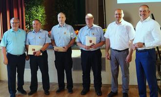 Für ihre langjährigen Dienste in den Freiwilligen Feuerwehreinheiten des Landkreises Bad Dürkheim wurden am 14. Juli in der Stadthalle Wachenheim insgesamt 23 Feuerwehrangehörige durch Landrat Hans-Ulrich Ihlenfeld geehrt. 23 erhielten das Goldene Feuerwehr - Ehrenzeichen für 35 Jahre und 7 Feuerwehrangehörige für 45 Jahre aktive pflichttreue ehrenamtliche Tätigkeit.