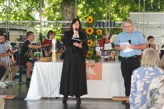 Kerwe-Gottesdienst: Pfarrerin Susanne Dietrich und Wort-Gottesdienstleiter Matthias Krauß