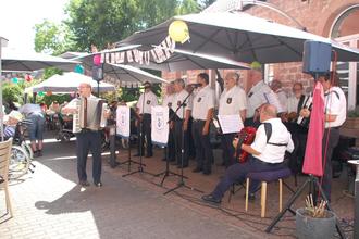Den Auftakt bildete der gut besuchte ökumenische Gottesdienst, gestaltet vom katholischen Wortgottesdienstleiter Heiner Oppermann und der evangelischen Pfarrerin Stoller. Die musikalische Begleitung des Festes startete mit dem Shanty-Chor aus Mannheim, den „Rheinauer Seebären“. Sie schafften es bereits nach den ersten Tönen ihrer Evergreens Freude in die Gesichter der Zuhörer zu zaubern und luden zum Mitsingen und Schunkeln ein. Der vielseitige Interpret,,Jo Paul“ von der südlichen Weinstraße schaffte es mit vielen bekannten Hits und Evergreens, das Publikum von den Bänken zu holen und animierte zum Mitsingen und Tanzen.