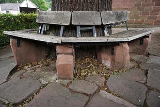 Die Friedenseiche von 1871 nimmt in der Neugestaltung der Fläche rund um die prot. Kirche – einstige Klosterkirche - einen wichtigen Platz ein. Die Sitzgelegenheit rund um den geschützten Baum wird neu gestaltet.