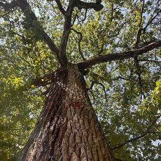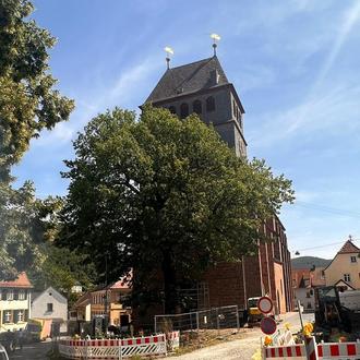 Lambrecht. (hk) Erhaben steht die 153 Jahre alte Friedenseiche in Lambrecht an der Westseite der ehemaligen Klosterkirche. Viele Lambrechter, sowohl Einheimische als auch Zugezogene, haben wahrscheinlich schon von diesem beeindruckenden Baum gehört. In den letzten Jahren war es jedoch still um die alte Eiche. Nun, da die Stadt Lambrecht den Platz um die Kirche neu gestaltet und die prot. Kirchengemeinde einen barrierefreien Eingang an der Westseite bauen lässt, rückt die Friedenseiche wieder in den Mittelpunkt des Interesses.