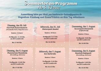 Fun Forest, Soccerpark Dirmstein, Planetarium, Zoo Karlsruhe und Badepark Hassloch. Bei Interesse sind Anmeldungen möglich im JUZ Lambrecht unter:juz-lambrecht-ferien@posteo.de