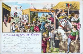 Aus der beeindruckenden Sammlung von Udo Grimm aus Lambrecht habe ich für diese Woche – passend zur Lambrechter Kerwe – zwei typisierte Motivkarten ausgewählt. Beide Karten tragen den Poststempel von 1903.