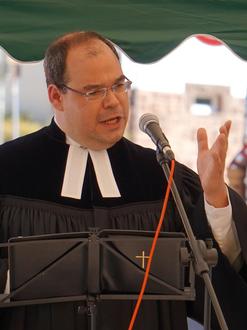 Pfarrer Martin Groß hielt die Predigt gut gelaunt „uff pälzisch“.