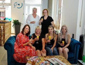 Das Team vom Haarstudio Christel mit der ehm. Inhaberin. Hinten stehend: Christel Müller und Angela Leising. Vorne von links: Julia Wolf, Andrea Devant, Franziska Münch und Seline Rost