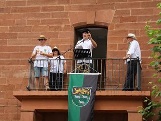 Lambrecht. (ve) Mit viel Spannung wurde von zahlreichen Besuchern nach dem Kerweumzug die Kerweredd von Markus Bialas erwartet, die er vom Balkon am Haus der Vereine herunter, eindrucksvoll hielt. Er scheute nicht mit Kritik, er sprach aber auch Lob aus, wo dies erforderlich schien. Aktuell lobte er das Kerwekomitee und ihre Vorsitzende Tanja, sowie die Vereine, Schausteller, Bauhof und alle Helfer. Besonders lobte er die Stadtjugend, die jetzt sogar mit dem Vorsitzenden Niklas einen eigenen Verein gründet. Das Lob aller Anwesenden auf die Stadtjugend wurde mit erhobenen Gläsern gewürdigt.