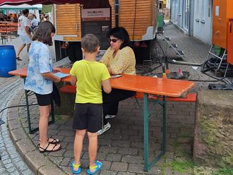 Ausgabe der Stempelkarten für die Kinderralley auf dem Kerwe-Platz