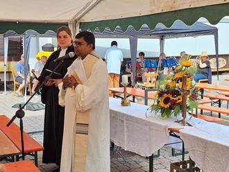 Pfarrerin Sarah Schulze und Kaplan Praveen Isukupalli