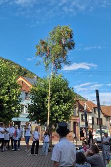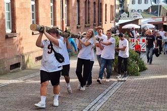 Den großen Kerwebaum tragen die Kerwejugendlichen traditionsgemäß zum Herzog-Otto-Platz