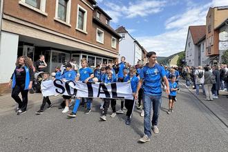 Für ausgelassene Stimmung sorgte auch das Fasnachtskomitee „Die Lambrechter Gäßböck“, das in bunten Kostümen mit mehreren Gruppen durch die Straßen zog. Die jungen Kicker der SG TAL präsentierten sich gemeinsam mit ihrem engagierten Trainerteam lautstark und voller Energie.